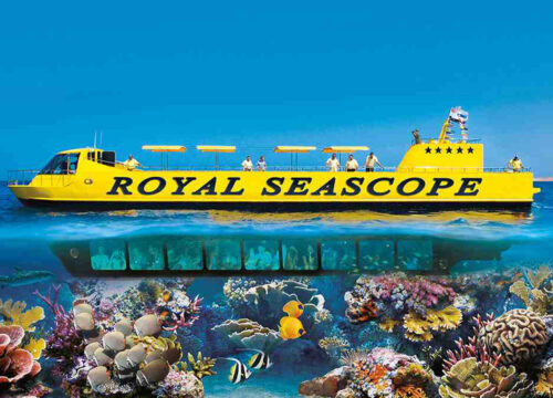 Discover the underwater wonders of the Red Sea on this semi-submarine cruise in Hurghada from an air-conditioned seat in an observation deck 3 meters below the sea level. Enjoy a fish-eye view of the the multi-colored and fascinating exotic marine life of the Red Sea – vibrant reefs teeming with marine animals of every shape, size and color. – Depart the marina and cruise for 15 minutes to one of the best coral reefs near Hurghada coastline. – Descending to an air-conditioned underwater glassed-walled observation deck, to view the extraordinary underwater world through huge panoramic windows from the comfort of your own seat for approximately 45 minutes – Snorkeling stop for 20-minutes then after we sail back to the Marina.