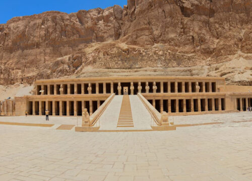 Next, you’ll visit the Temple of Hatshepsut, one of Egypt’s most unique temples. It’s dedicated to the only female pharaoh of Ancient Egypt, Queen Hatshepsut. The temple’s design and location against the cliffs make it a striking and memorable sight.